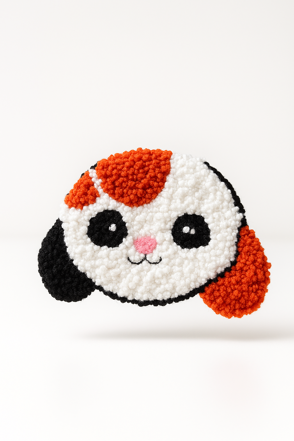 Brighten up your day with this adorable Dog Mug Rug. This handcrafted mug rug features a cute, tufted dog face with charming orange, white, and black fur patterns. The plush texture gives it a soft and cozy feel, making it a delightful addition to your coffee table, desk, or bedside. Perfect for protecting your surfaces from heat and condensation, this mug rug is a must-have for any dog lover or anyone who appreciates fun, unique home accessories.